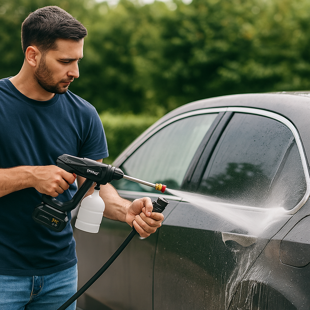 La Hidrolavadora Portátil Sate® es la solución definitiva. Perfecta para autos, motos, bicicletas, muebles de jardín y superficies expuestas a polvo, tierra o suciedad difícil, esta herramienta combina potencia industrial con la practicidad de un diseño inalámbrico.