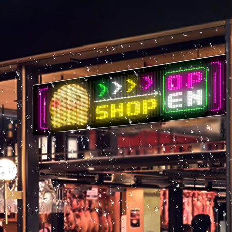 Mensajes brillantes y dinámicos que destacan de día y de noche.💧 Resistente al Agua